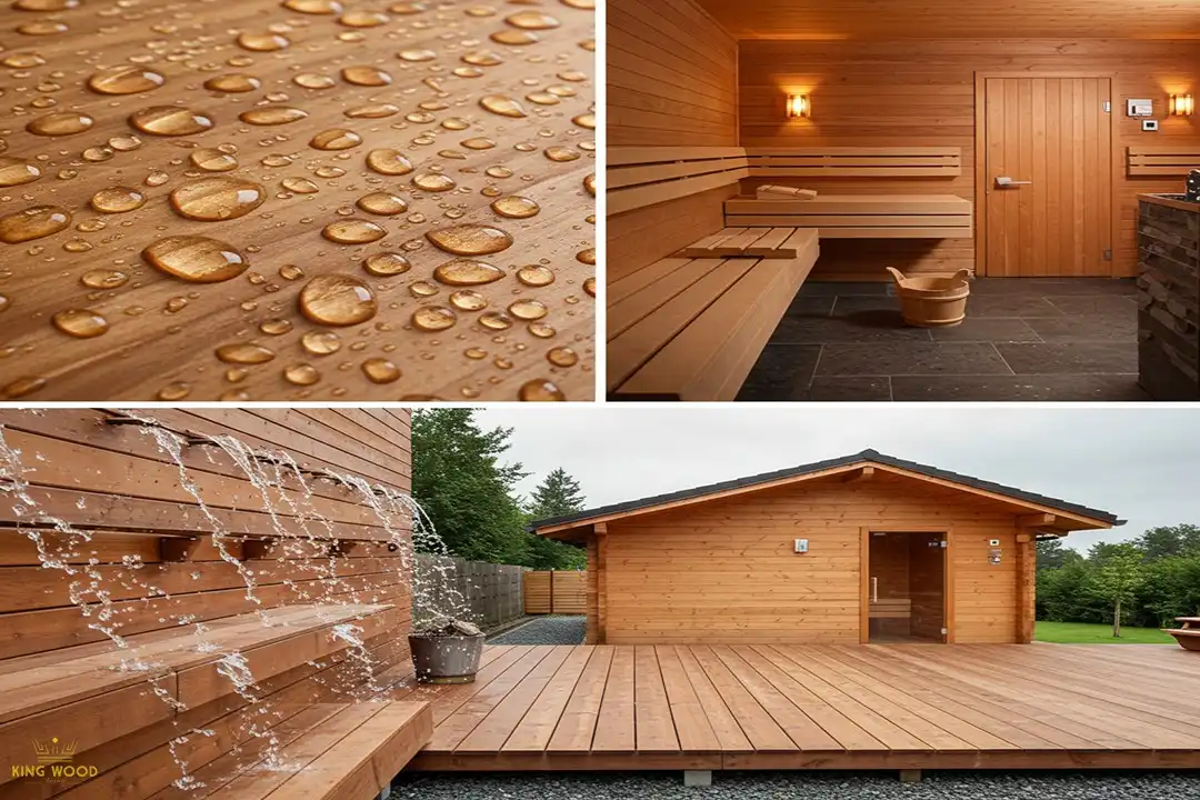 - دیوارپوش اطراف استخر و محوطه سونا: مقاومت ترمووود در برابر رطوبت، آن را برای این فضاها ایدهآل میکند.