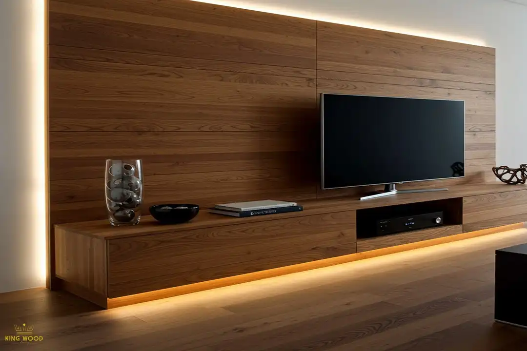 - پوشش دیوارهای تلویزیون (TV Wall): ترمووود پسزمینهای شیک و طبیعی برای تلویزیون و سیستم صوتی شما فراهم میکند.