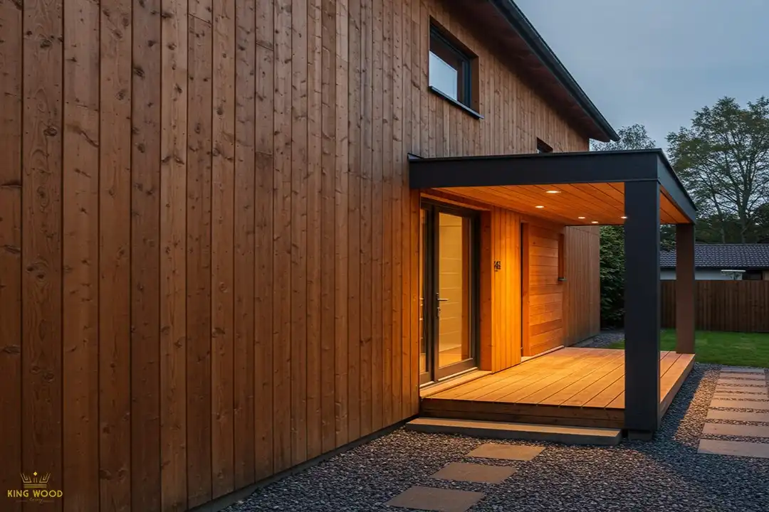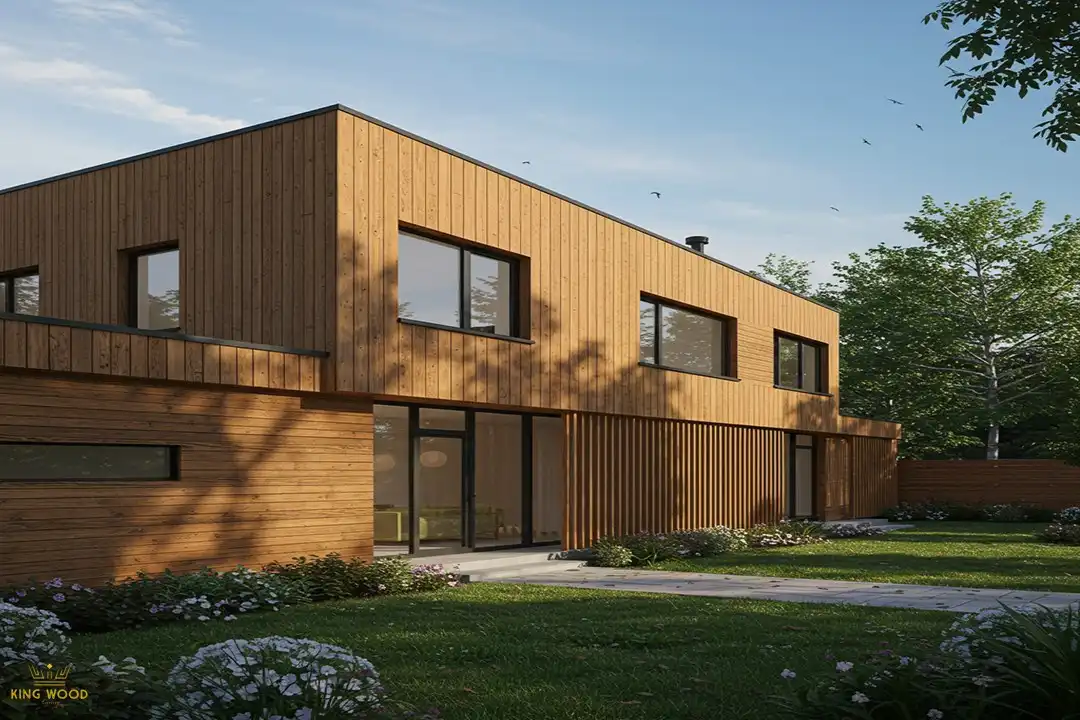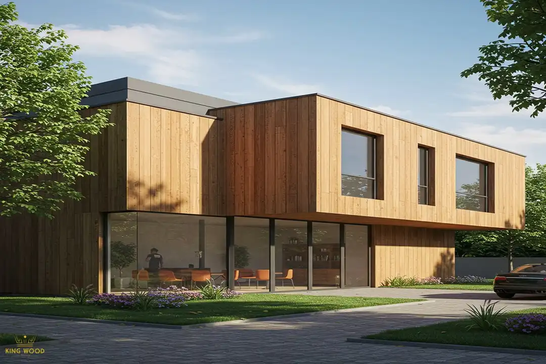 - نمای خارجی ساختمان: ترکیبی از ترمووود با سایر مصالح مدرن مانند شیشه و فلز، نمایی خیرهکننده و بهروز ایجاد میکند.